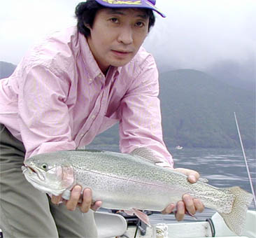 大物はレインボートラウト 56.0cm 2.36kg 世田谷区の坪井一夫さん。 トローリング90ヤード ツノルアー 百貫の鼻沖で。ヒメマスが1尾混じりました。