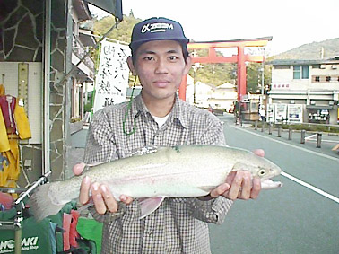 大物は東村山市の竹田大介さん。レインボートラウト54.0cm、1.50kg、トローリング、立岩沖、80ヤード、アワビスプーンで釣りました。