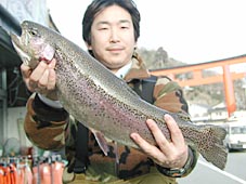 府中市の藤田広二氏 レインボートラウト55cm 2.3kg