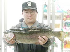 横浜市の小野寺広氏。レインボートラウト50.5cm