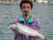 ポイントは白鳥の湾です。ゾンカーのフライキャスティングで釣りました。