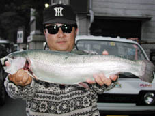 本日の大物は平塚市の植原輝夫氏。レインボートラウト59.0cm,2.8kg。