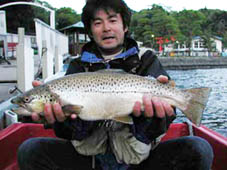 本日の大物は東京都港区の吉田勉氏。 ブラウントラウト48cm,1.6kg,ポイントはマリーナです。 ウッドベイト7STのトローリングです。 レインボートラウトは42cm,1.1kg ポイントは,成蹊です。 ウッドベイト8FRのルアーキャスティングです。