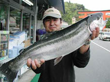 本日の大物はレインボートラウト63cm,3kg