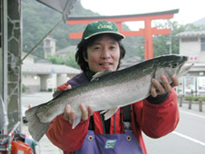 釣果 レインボートラウト25cm-60cm 0-3尾 本日の大物は世田谷区坪井一夫氏。 レインボートラウト60cm,2.4kg。 トローリング60yd山本アワビで釣りました。 ポイントは箱根園沖です。