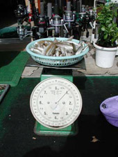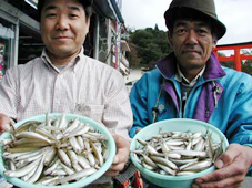 中井町の相原光朋氏(左)。松田町の小宮茂氏。 半日2人で2kgです。