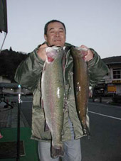 大物は岐阜市の野々村留美雄さん、レインボートラウト66cm,3.55kg
