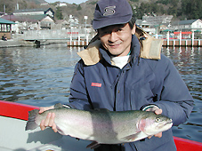 釣果 ブラウントラウト 50cm,1尾 大物は横須賀市の戸嶋雅巳さん、ブラウントラウト50cm,1.8kg ポイントは箒の鼻です。 MSスペシャルのフライキャスティングで釣りました。 ホンマス 47cm,1尾 大物は小田原市の加藤義人さん、ホンマス47cm,1.58kg ポイントは関ケ浦です。 ゾンカーのフライキャスティングで釣りました。