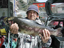 大物は横須賀市の管野雅之さん、レインボートラウト65cm,3.55kg