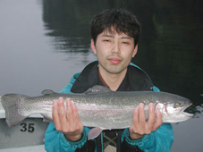 釣果 レインボートラウト 30cm〜59cm,0〜3尾 大物は日立市の豊田淳さん、レインボートラウト59cm,2.7kg ポイントは元箱根湾です。 アスリートミノー(ワカサギカラー)7cmのルアーキャスティングで釣りました。