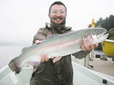 釣果 レインボートラウト レインボートラウト30cm〜61cm,0〜3尾 大物は渋谷区の福武寛さん、レインボートラウト61cm 2.4kg ポイントは元箱根湾です。 ラパラトークダンサー赤金のルアーキャスティングで釣りました。