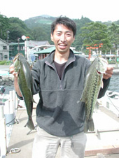 釣果 ブラックバス 25cm〜40cm,0〜3尾 小平市の宮崎昇さん、ブラックバス4ocm,1.04kg ポイントは和田の角です。 オリジナルザラのルアーキャスティングで釣りました。