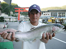 釣果 レインボートラウト 35cm〜46.5cm,0〜3尾 大物は世田谷区の山崎完哲さん,レインボートラウト46.5cm,1.15kg ポイントは百貫の鼻沖です。 ツノのトローリング90y で釣りました。