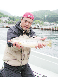 釣果 ブラウントラウト・・・43cm/1尾 本日の大物はブラウントラウト、43cm, 1.1kg 神奈川県横浜市の管野雅之さん。 ORA(LTZ 80)のトローリング80ヤード。 ポイントは蛭川。