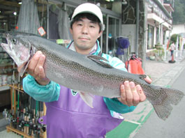 釣果 レインボートラウト・・・59cm/1尾 大物は59cm,2.1kg 神奈川県秦野市 の松本一生さん。 ツノのトローリング90ヤード。 ポイントは弁天の鼻。