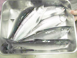 ヒメマス・・・26cm〜33cm/7尾 ヒメマス7尾。 神奈川県川崎市の兵頭秀二さん。 ヒメトロ、タナは約15m。 ポイントは成蹊沖。