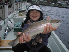 釣果 ブラウントラウト・・・45.5cm/1尾 大物は東京都渋谷区の福武典子さん。 ジョイントラパラ7cmパールのトローリング70ヤード。 ポイントは元箱根湾。