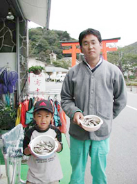 東京都江戸川区の小松崎豊くん。 3名で700g。カラバリ使用。 タナは14m前後の底釣り。 ポイントは元箱根湾。