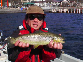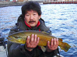 ギャレットHR洋銀ワカサギ13cmのルアーキャスティング。ポイントは立石。