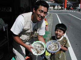神奈川県横浜市 久保田秀樹さん。 ワカサギは午前中3人で約700g カラバリと漁探使用。ポイントは元箱根湾。