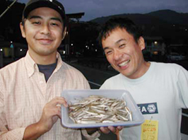 神奈川県横浜市の堀江克有さん。 2人で約200g。カラバリとアカムシ使用 ポイントは元箱根湾と箱根園。