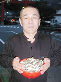 神奈川県相模原市の樋詰康二さん。 2人で約1.1kg 紅サシ使用。ポイントは元箱根湾。