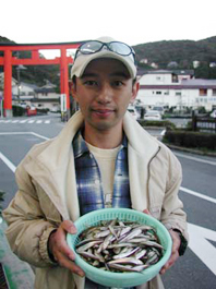神奈川県 足柄上郡 相原 光明さん。 1人で午前中までで約900g、アカムシ使用。 ポイントは元箱根湾。