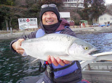 神奈川県横浜市の宮坂 浩司様 レインボートラウト41.5cm,0.88kg ゾンカーオリーブのフライキャスティング ポイントは元箱根湾