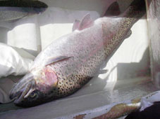 レインボートラウト 57.5 cm , 2.68 kg フライショップ「クレオール」スクールにて ポイントは、 元箱根湾