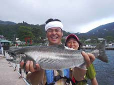 東京都渋谷区の管野 雅之様 サクラマス56cm,2.28kg、 T-ホーンのトローリング90ヤード ポイントは塔ノ鼻