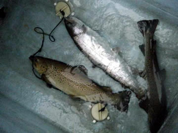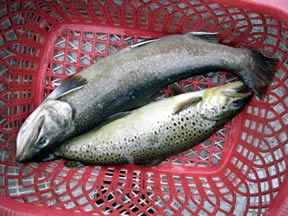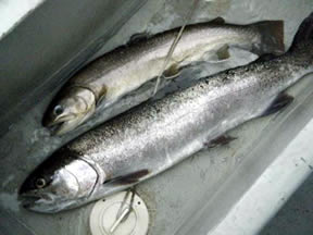レインボートラウト44cm、0.88kg ギャレットGR80ファイヤーH のルアーキャスティング
