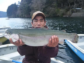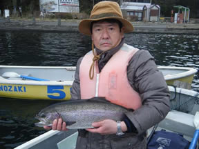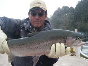 | 清水 様 レインボー61cm、2.98kg MSのフライキャスティング ポイントは元箱根湾 |