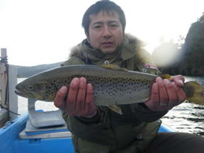 サキタ 様 ブラウントラウト47cm、1.4kg スプーンのルアーキャスティング ポイントはプリンスホテル |