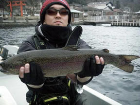 | 小川 様 レインボートラウト57cm、2.24kg ワンダー60のルアーキャスティング ポイントは立石 |