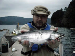 山岸 様 サクラマス 47cm、1.56kg オリジナルスプーンのトローリング40ヤード ポイントは亀ヶ崎 |