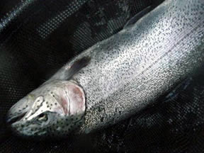 管野 様 レインボートラウト61cm、3.36kg ハマゾンのフライハーリング ポイントは早川水門 |