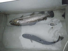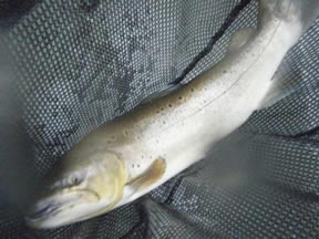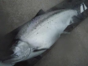 龍野 様 サクラマス (全長43.5p,又長42p) 1.22s Tホーンエンジェルのトローリング40ヤード ポイントは立岩 |
