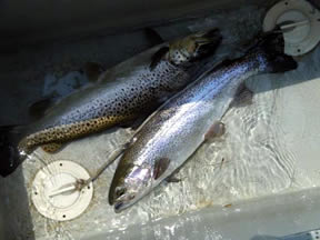 | 増島 様 レインボートラウト40.5cm、0.92kg カズミノーのトローリング40ヤード ポイントはカヤアラシ |