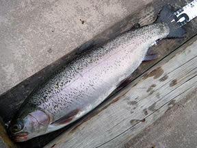 | 中島 様 レインボートラウト48.5cm、1.56kg ナカジマオリジナルミノー7p鮑のトローリング30ヤード ポイントは百貫の鼻 |
