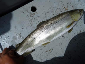 鈴木 様 レインボートラウト53.0cm、2.1kg アオミドロのハーリング ポイントは養漁場前 |