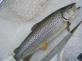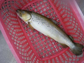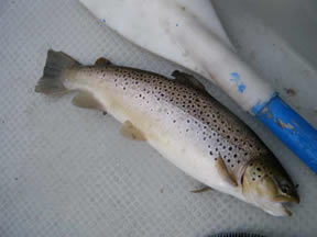 | 石井 様 ブラウントラウト41.5cm、1.08kg Tーシェル夜光貝のトローリング ポイントは白浜 |