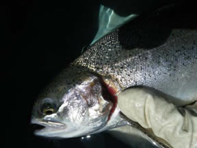 | 管野 様 レインボートラウト61cm、2.76kg Tシェル夜光貝ミラーのトローリング30ヤード ポイントは山のホテル |