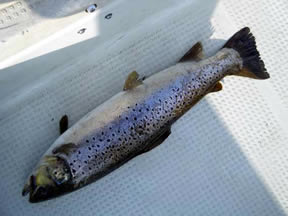 飯田 様 ブラウントラウト51cm、1.7kg カズミノーT75FS-PSのトローリング70ヤード ポイントはヒルガ |