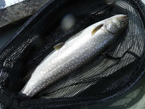 | 飯田 様 イワナ40.5p カズミノーのトローリング60ヤード ポイントは庭石 |