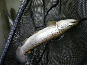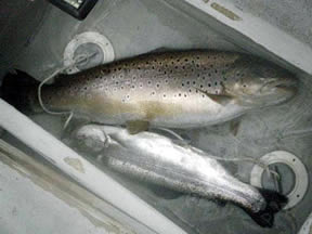 | 佐野 様 ブラウントラウト42cm、0.72kg ウッドベイトのトローリング ポイントはトリカブト |