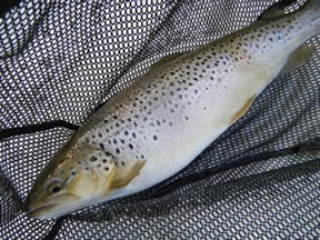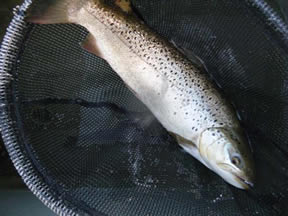 原田 様 ブラウントラウト40.0cm、1.04kg オリジナル角8cmのトローリング ポイントは庭石 |