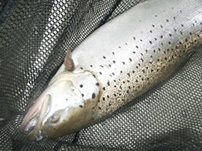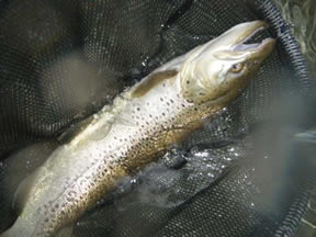 | 斉藤 様 ブラウントラウト52.5cm、2.22kg πミノー9cmピンクのトローリング ポイントは立石 |
