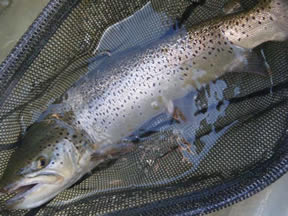 植松 様 ブラウントラウト58cm、2.36kg ナカジマミノーホログラム稚魚カラーのトローリング80ヤード ポイントは清水ダキ