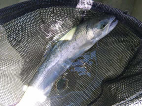 | 佐野 様 レインボートラウト42.0cm、0.56kg ウッドベイトのトローリング90ヤード ポイントは立岩 |