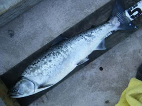 荒木 様 サクラマス48cm、1.16kg ウッドベイトのトローリング90ヤード ポイントは龍宮殿